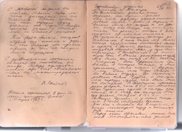 Первое ваше письмо я получил, очень обрадовался, что вы получили мои письма и телеграмму. С общежитием теперь устроился хорошо, правда пришлось побегать с вещами по городу, переменил 4 места, пока устроился, думаю, окончательно. Сейчас живу в комнате на 4 места, ребята хорошие. Почти весь день есть кипяток, тепло, печи топят углём. В комнате есть стол, табуретки и тумбочка. Всего в нашем доме живут 12 студентов 1 курса и 5-го.