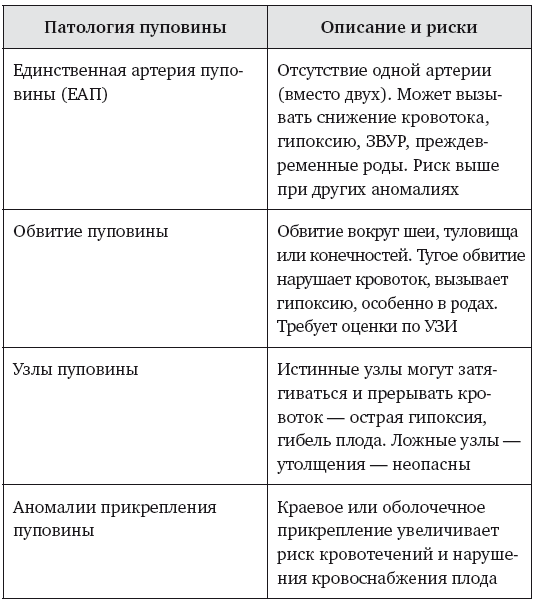 • Пуповина: состояние пуповины и количество сосудов в ней, чтобы исключить гипоксию.