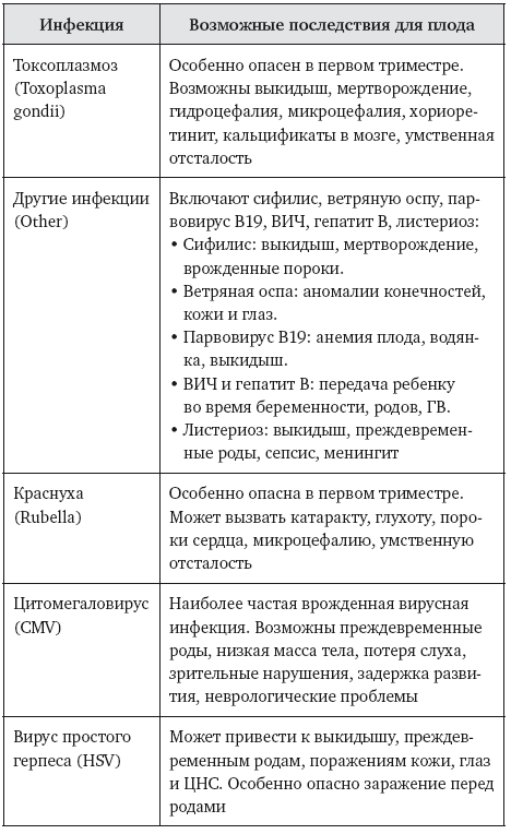 TORCH-инфекции – это группа инфекций (Toxoplasma gondii – токсоплазмоз, Other – другие инфекции, Rubella – краснуха, Cytomeg alovirus – цитомегаловирус, Herpes simplex virus – вирус простого герпеса), которые могут передаваться от матери к плоду во время беременности и вызывать серьезные последствия для развития ребенка.