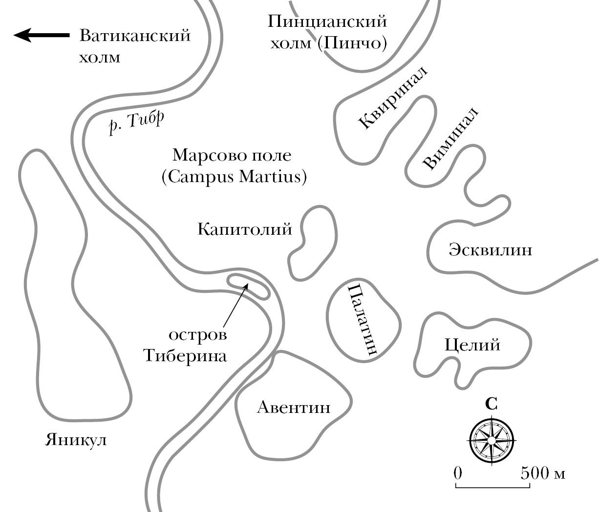 На этих холмах обитали дальние потомки переселенцев, которые несколькими веками ранее пришли на полуостров во время продолжительной индоевропейской миграции из Восточной Европы и Центральной Азии. Это были Latini, или латины, одно из многочисленных италийских племен (другим таким народом были сабиняне), и они обосновались в Центральной и Южной Италии около 1500 года до н. э. (а возможно, и раньше). Латины жили поселениями, разбросанными по территориям к югу от Тибра, в местности, известной под названием Лаций, которая простиралась примерно на 100 километров вдоль побережья и по материку. Рим был на самом северном краю Лация и граничил с богатыми минералами землями этрусков к северу от Тибра и с сабинянами на востоке. Наиболее значительные ранние латинские поселения были южнее Рима, в Альбанских горах. Поселения латинян, ютившиеся на месте будущего Рима, были меньше и включали Велию (она занимала гребень, соединяющий Палатинский холм с Эсквилинским) и Кверкветулан (в сущности, этакие «Дубки» на Целийском холме).