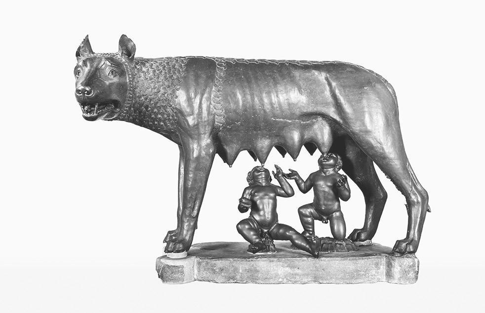 Знаменитая бронзовая скульптура, изображающая волчицу, кормящую Ромула и Рема. Волчица предположительно этрусская, V века до н. э., она появилась до распространения легенды о Ромуле и Реме. Близнецов добавили в конце XV века