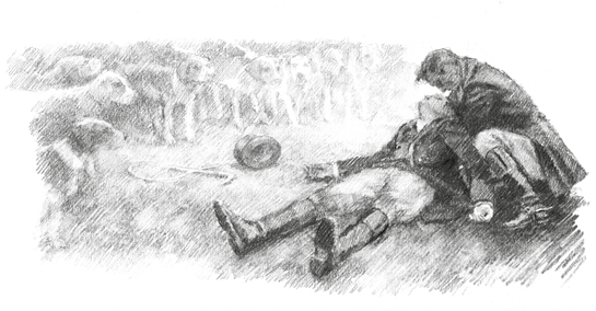 Охотники столпились вокруг распростёртого на земле молодого человека, но поднял его с земли наш хозяин, который до этого наблюдал за охотой со стороны. Голова юноши откинулась назад, руки бессильно повисли, и лица окружающих сделались очень серьёзными. Стояла полная тишина, даже собаки унялись, будто поняли, что случилась беда. Юношу отнесли в дом нашего хозяина. Позднее я узнал, что это был Джордж Гордон, единственный сын нашего помещика, рослый и красивый молодой человек, которым гордилась семья.
