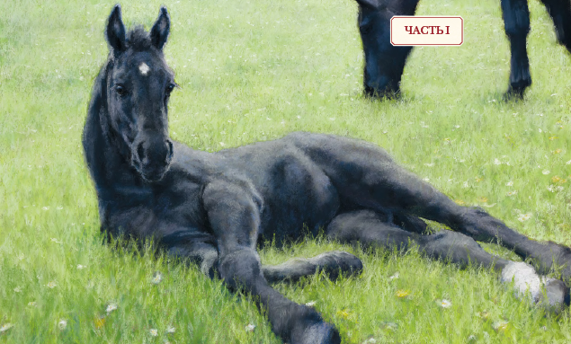 Кроме меня по лугу бегало ещё шестеро жеребят, они были старше меня, а некоторые ростом со взрослых коней. Всё равно я бегал в компании с ними, и нам бывало очень весело. Мы скакали галопом наперегонки, круг за кругом. Правда, мы не только скакали: бывало, что старшие жеребята начинали кусаться и лягаться.