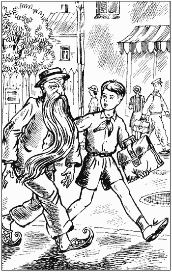 Волька обмер. Из зеркала на него глядело уродливое существо: в коротких штанишках, в пионерском галстуке и с бородой апостола на розовом мальчишеском лице.