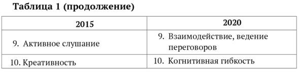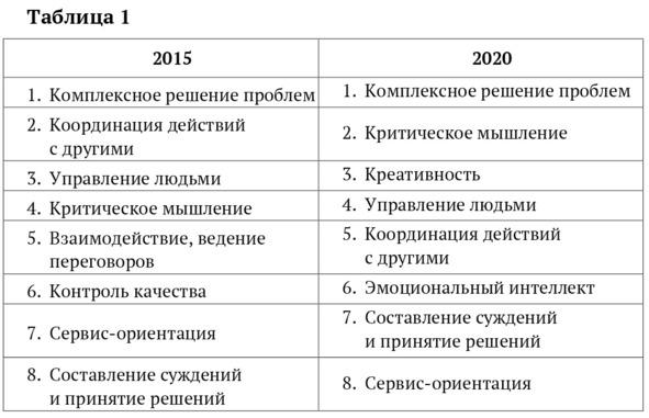 Для сравнения аналитики http://www.weforum.org/ представили таблицу, какие навыки были актуальны для успешной карьеры в 2015 году и какие важны в 2020-м. (таб. №1)