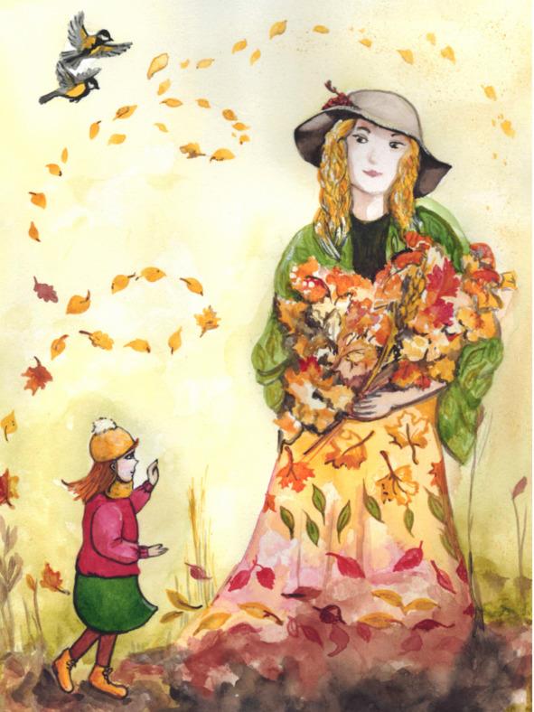 — Вот смотри, осень столько всего дарит нам просто так: ягоды и грибы в лесу, тыквы и кабачки на грядках, множество семян, орехов и шишек, которые люди и животные собирают и запасают на зиму. И ничего Осень не требует взамен. Так же поступила и ты, доченька. Собрала букет из осенних листьев и решила поделиться своей радостью со мной просто так, потому что ты очень добрая и щедрая.