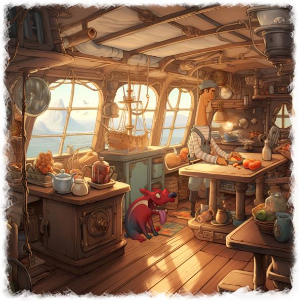 Каравелла «Джоконда» стояла на якоре в бухте Бананао. Старший помощник Камбала хлопотал на корабельной кухне — камбузе. Помешав в сковородке шкворчащие томаты, он принялся замешивать в миске тесто для вафель.