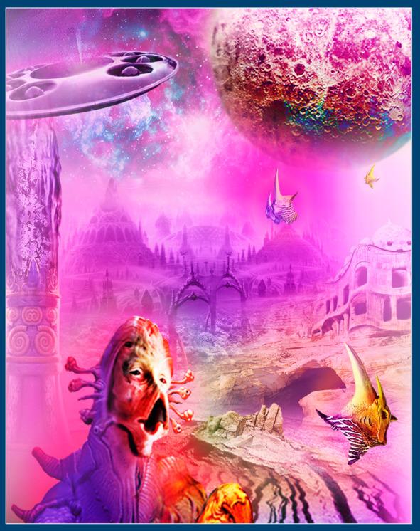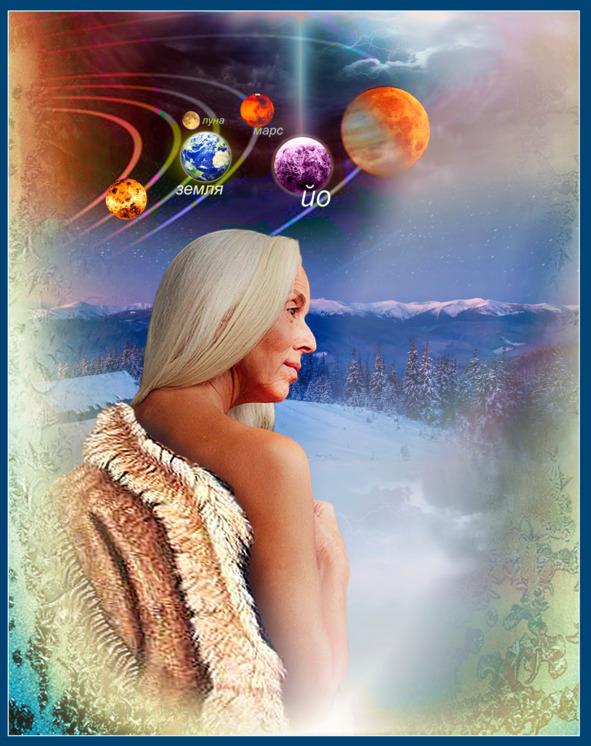 Пустынны и безжизненны холодные ландшафты Йо. В безветренном пространстве под слоями космической пыли покоятся руины древнейшей цивилизации солнечной системы. Исчезли газообразные океаны, превратившись в озера, растекающиеся лилово-сиреневым студнем по остывающей поверхности… Незыблемы лишь космические базы йотов, поддерживаемые пирамидальными генераторами-энергореакторами, питающие погибающую планету энергией Земли. Мощные порции энергии на время оживляли ее, превращая в виртуальный Эдем. Тогда животно-растительный мир планеты расцветал, распускаясь фантомами кармино-бардовых холодных и ярких окрасок, и причудливо-фантастических форм. Поэтому Йо — Сиреневая планета.