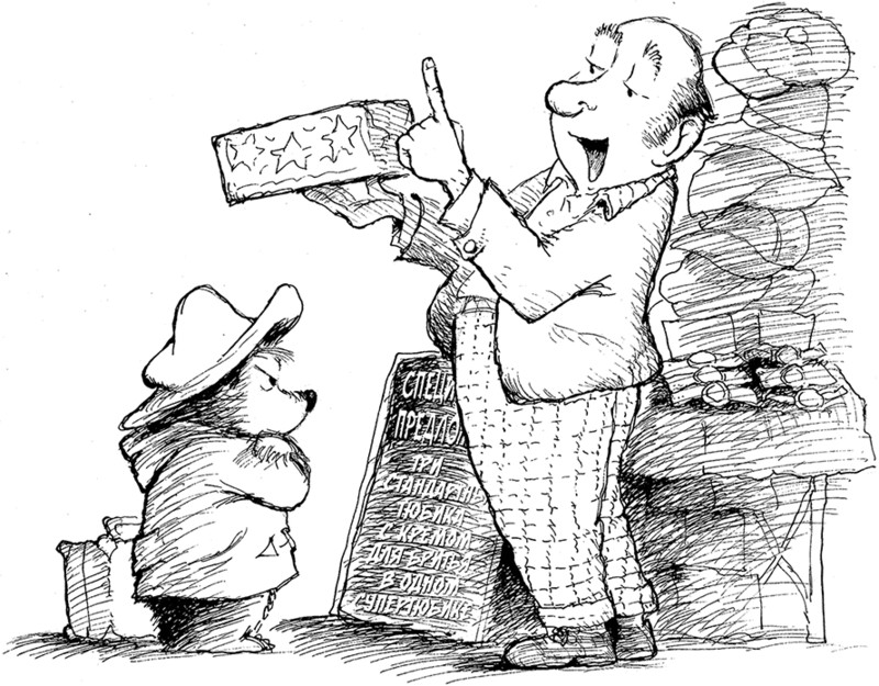 – Большое спасибо, – сказал медвежонок, забирая покупку. – Я, может быть, завтра зайду ещё что-нибудь купить.
