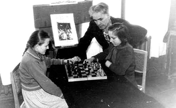 Педагоги 50-х: Иван Ефимович Кондин — руководитель шахматного кружка, Александр Васильевич Горобцов — руководитель драмкружка, Анатолий Дмитриевич Чепкин — руководитель вокального кружка и его воспитанники. Репетиция перед выступлением на праздничном концерте