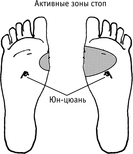 Дополнительный эффект от воздействия на юн-цюань: точку используют в критических состояниях (отравление, судороги); при ломоте в пояснице и коленях, головной боли, головокружении, шуме в ушах, бессоннице, сердцебиение, снижении памяти, нарушении мочеиспускания; при кашле, сухости во рту и в горле, нервных болезнях и многих других.