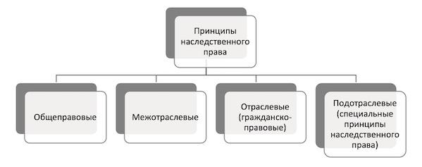 В наследственном праве выделяются общеправовые, межотраслевые, отраслевые и подотраслевые принципы.
