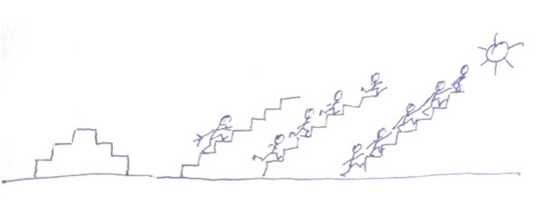 Люди всегда помнили о Золотой Цепи и пытались восстановить утерянную связь. Люди научились прекращать войны, вносить в хаос войны и людскую конкурентную борьбу за власть и материю законы человеческие, которые стремились сделать подобными Закону Божьему. Они знали, что Златая Цепь не разрушилась полностью. В результате катастрофы в ней образовался разрыв между миром людей и божьим миром. Разрыв надо было заполнить, и люди решили заполнить его лестницей.