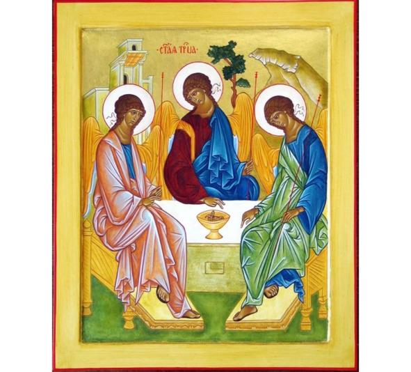 Ну, раз про ангелов, значит пора про Троицу, где этих ангелов трое на рублёвской иконе, одном из главных символов русского православия. Собственно, поэтому я и назвал статью «любовным треугольником», но не в том, конечно, образе, во что превратили его современные писаки прикольно — эротического жанра, а, как вы понимаете совсем о другом. Сама глубинная суть ангела — это любовь. Это его мир, его способ общения с ним. Проявляется любовь в виде бескорыстного служения миру людей (это для ангелов нижний мир, как для нас мир природы), друг другу (ангельский мир) и Творцу (верхний мир). У рублёвской троицы есть несколько толкований. Но я сейчас о том, что за каждым ангелом на иконе нарисован свой символ мира для людского служения в любви: мира людей — дом, мира природы — дерево, и верхнего (горнего) — гора. Научиться бескорыстно служить этим трём мирам и есть главная задача человека.