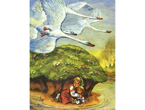 По-другому развивается сюжет в «Гуси-лебеди». Сестрица Алёнушка в ходе решения своих проблем не привлекает насильственно к их решению окружающее пространство. Более того она походу сюжета сама откликается на проблемы пространства, хотя ей, прямо скажем, недосуг. В итоге, она тоже решает свою проблему, но не в среднесрочной перспективе, а навсегда. В безвыходной для Алёнушки ситуации пространство само приходит ей на помощь, и похоже, этот союз у них надолго.