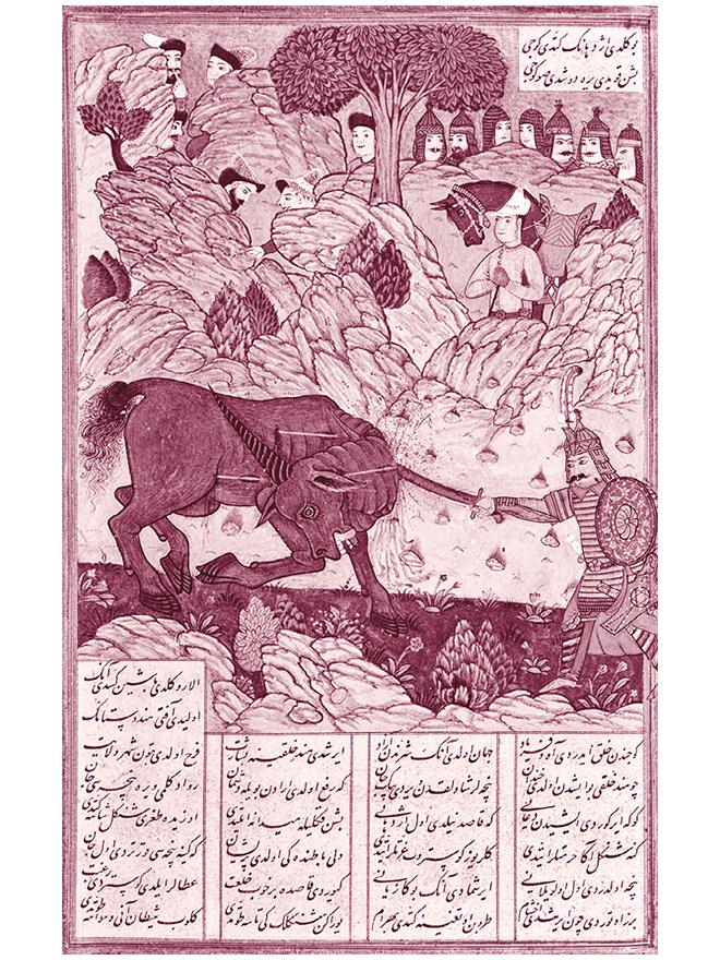 Бахрам Гур убивает единорога. Миниатюра Дервиша Абди из турецкой рукописи поэмы Фирдуоси «Шахнаме». 1616–1620 гг.