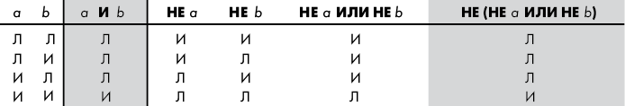 Результат сложения двух бит тот же, что и для операции «исключающее ИЛИ» с этими двумя битами, а переносимое значение содержит то же, что ИЛИ этих двух бит. Вы можете проверить эту теорию по рис. 1.9, где сложение 1 и 1 в двоичном формате дает 10. В этом примере переносимое значение равно 1 — то же самое, что и результат операции «1 И 1». Точно так же выражение (1 исключающее ИЛИ 1) дает 0, то есть значение, которое мы присваиваем самой позиции бита.
