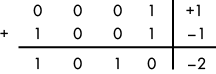 Допустим, нужно прибавить +1 к –1. Мы ожидали получить 0, но при использовании представления в виде прямого кода со знаком получается другой результат, как показано на рис. 1.10.