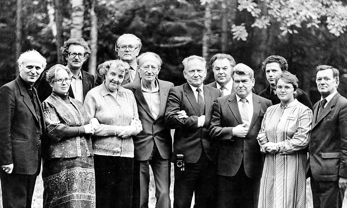 Учителя-новаторы (слева направо): Ш. Амонашвили, Л. Никитина, С. Соловейчик, С. Лысенкова, В. Матвеев (на втором плане), Б. Никитин, В. Шаталов, В. Караковский, И. Волков, А. Адамский, Г. Алешкина (один из организаторов), Е. Ильин