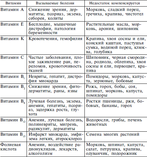 В основном витамины синтезируются растениями и вместе с пищей поступают в организм, некоторые из них образуются микробами, живущими в кишечнике. Недостаточное содержание витаминов в пище, а также нарушение их усвоения организмом приводят к развитию тяжелых нарушений обмена веществ. Заболевание, возникающее в результате отсутствия того или иного витамина в организме, называют авитаминозом; при относительной недостаточности какого-либо витамина наблюдается гиповитаминоз.