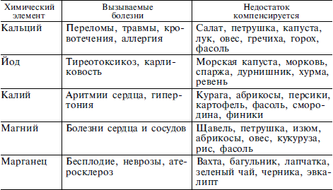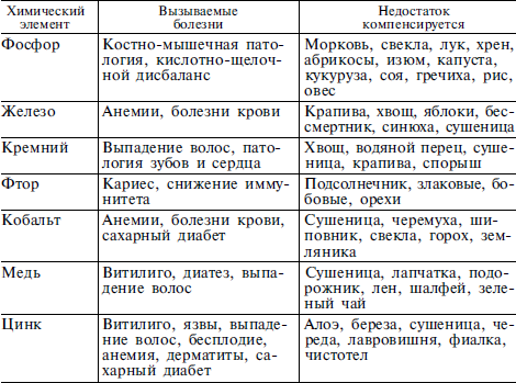 Некоторые патологические состояния и болезни непосредственно зависят от количества поступающих в организм необходимых микроэлементов, а отдельные болезни в некоторой степени могут быть устранены посредством использования тех или иных лекарственных растений или фитодиетических блюд из них (см. табл. 2).