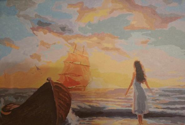 А в море я увидела Корабль! Корабль с Алыми парусами! Совсем, совсем как в сказке — от него отплыла шлюпка, в которой сидело несколько матросов.