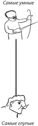 Перед вами вертикальная шкала (рис. 1). На ее северном полюсе самые умные люди, на южном – самые глупые. Найдите свое место на этой шкале. Нашли? Вы поместили себя в районе середины? Нет, немного выше! Отгадал? Может, вы думаете, что я умею читать чужие мысли?