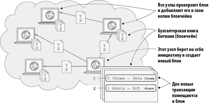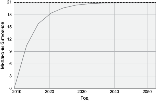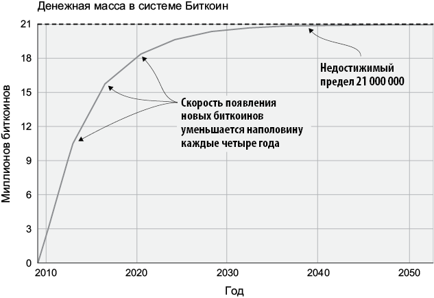 В системе Биткоин действует тот же график выпуска новых монет, что и в случае с жетонами на булочки. Все новые биткоины создаются как вознаграждение узлам за безопасность консенсусного реестра Биткоин — блокчейна, в точности как Лиза вознаграждается за безопасность электронной таблицы.