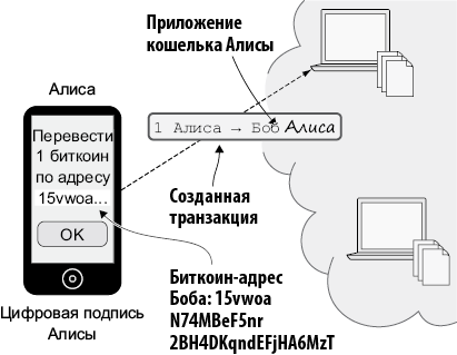 Рис. 2.1. Цифровые подписи в Биткоин