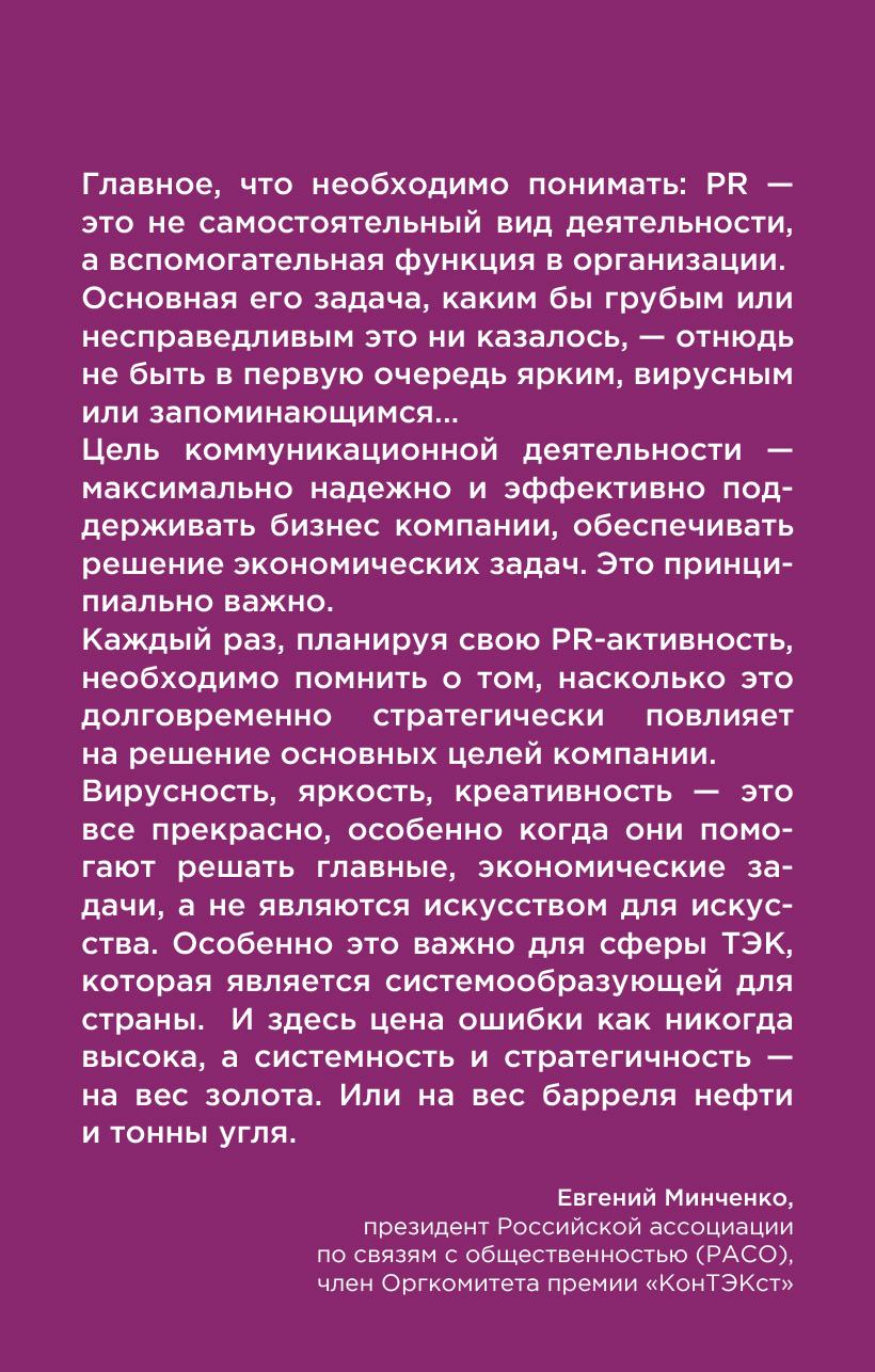 Книга «30 лучших коммуникационных проектов ТЭК» — это уникальный проект, который объединил многолетний опыт ведущих компаний топливно-энергетического комплекса в различных направлениях коммуникационной деятельности. Это квинтэссенция лучших отраслевых коммуникационных практик, технологий и инструментов. Вы держите в руках уникальный учебник, который поможет вам решить практически любую задачу компании, подскажет новые идеи, снабдит самыми эффективными инструментами и технологиями.