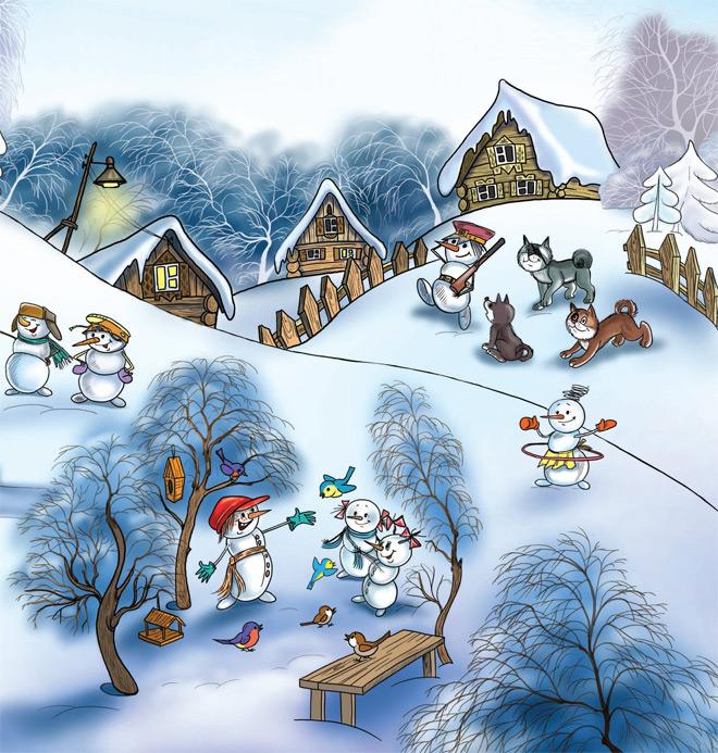 — Я обычно делал так, — рассказывал потом снеговичок Морковкин, — налеплю снежков и давай кидать в окошко, а сам спрячусь за дверью. Охранник выскочит, а я в это время — шмыг в подъезд!