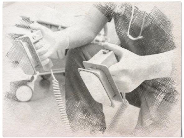 Ассистент в светло-зеленом костюме, с маской на лице нажал на клавишу прибора. Заряд тока пробежал по проводам и проник в тело. Пробуждая, уже почти остановившееся, сердце к жизни.