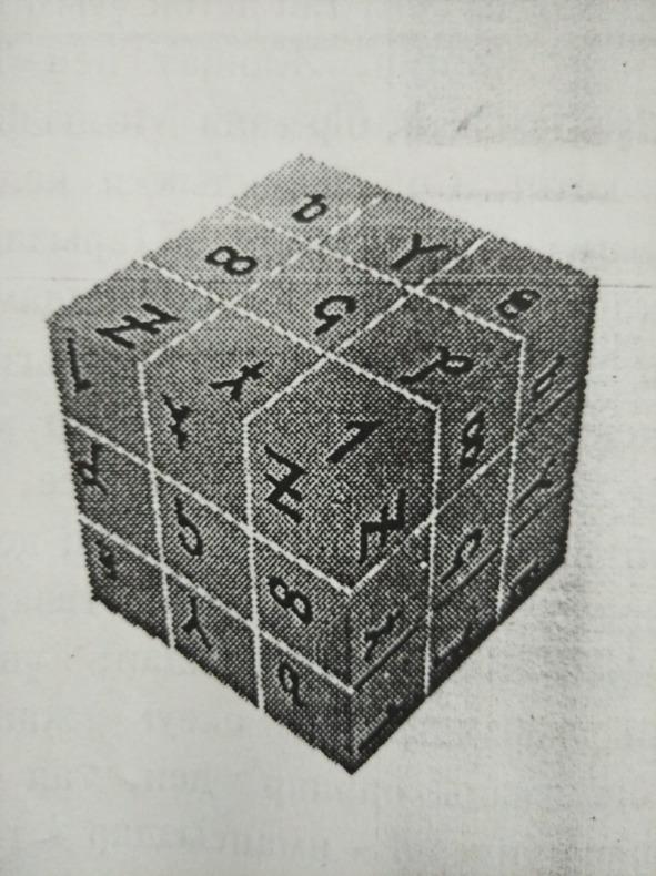 В плоскостном двухмерном изображении Крест, как вы видите, состоит из шести больших квадратов, в каждом из которых девять маленьких квадратов. В каждый маленький квадрат можно вписать еще девять мелких квадратиков и так, в такой последовательности уменьшать их масштаб, пока мы не получим конечную (изначальную) точку. Непроизвольно напрашивается аналогия — Вселенная возникла из точки!
