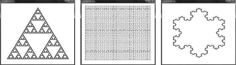 Между прочим, рекурсия лежит в основе удивительного математического искусства создания фракталов — самоподобных фигур, примеры которых представлены на рис. В.1.