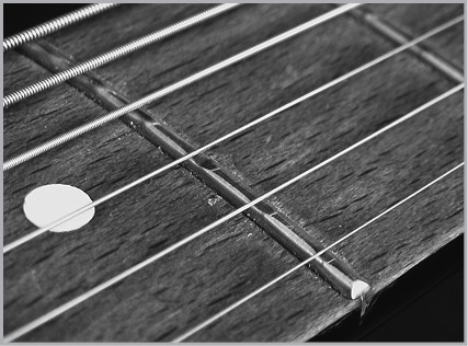 Со временем струны протирают в железных ладах глубокие бороздки (рис. 1.2) — эффект напильника, поэтому, играя на старой или некачественной гитаре, можно слышать характерное дребезжание (струны бьются о протертые лады и звенят).