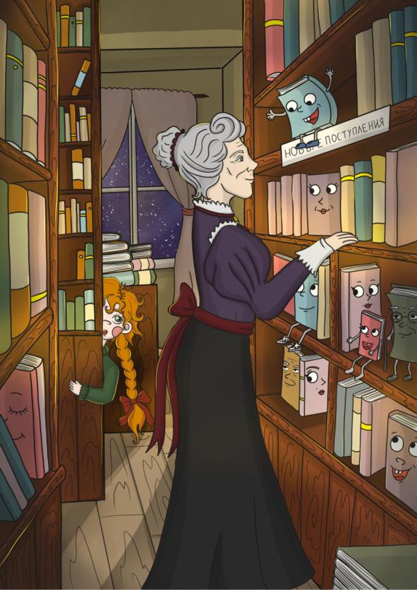 Слушая почтенную даму, маленькая Таня подумала: «Какая всё-таки Елизавета Елисеевна добрая, как любит свои книжки, даже разговаривает с ними!» И тут Таня подпрыгнула, едва не уронив книги с полки.