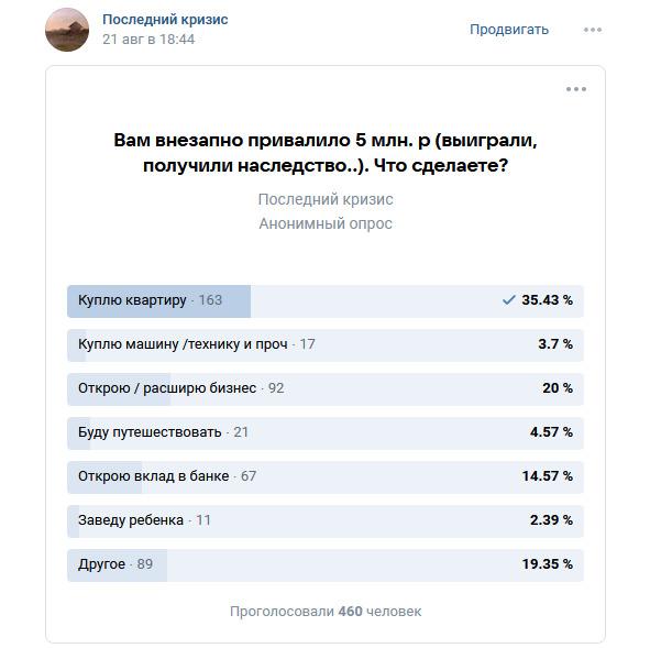 Рис. 1. Опрос, куда бы вы потратили деньги