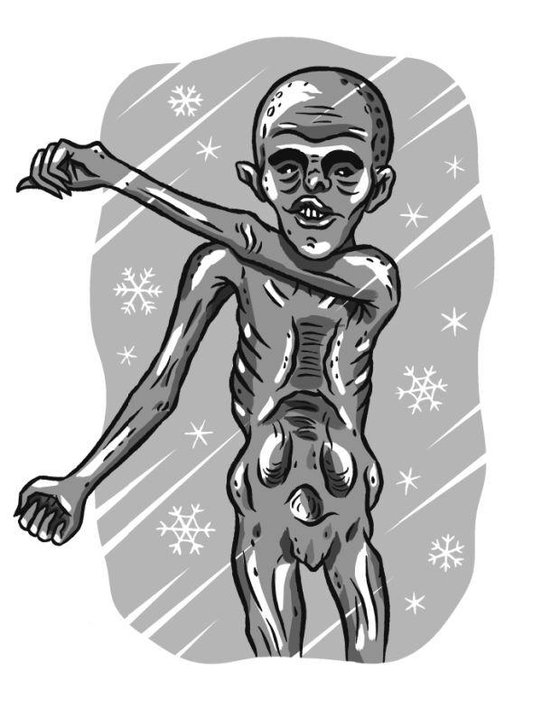 Сегодня Ледяной человек – скелет, завернутый в золотисто-коричневую кожу, качеством напоминающую дорогие туфли. Его ноги скрещены в лодыжках, а руки вытянуты вправо под таким углом, словно в момент замерзания он танцевал флосс.