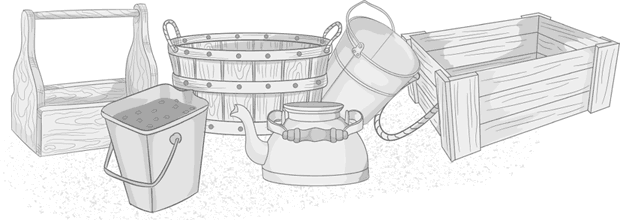 Глагол «contain» переводится с английского как «содержать», а существительное «container», которое от него происходит, обозначает любой предмет, в котором можно что-то держать, содержать, хранить, выращивать и т. д. Контейнер в нашем случае – это любая емкость, в которую можно насыпать грунт и посадить растение: старый башмак, коробка, банка, покрышка, ванна, ведро, барабан стиральной машины и, конечно, банальные деревянные ящики и цветочные горшки.