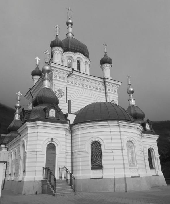 Дорога спускается с перевала на Южный берег. Но что это? Чуть ниже Байдарских ворот, примерно в двух километрах, на отдельно стоящей скале у самого края обрыва миниатюрный храм, будто игрушечный! Вот так неожиданность: храм здесь, в горах… Кто его построил в таком труднодоступном месте, зачем? Какие тайны хранят его своды? Ответы на все эти вопросы мы сейчас узнаем.