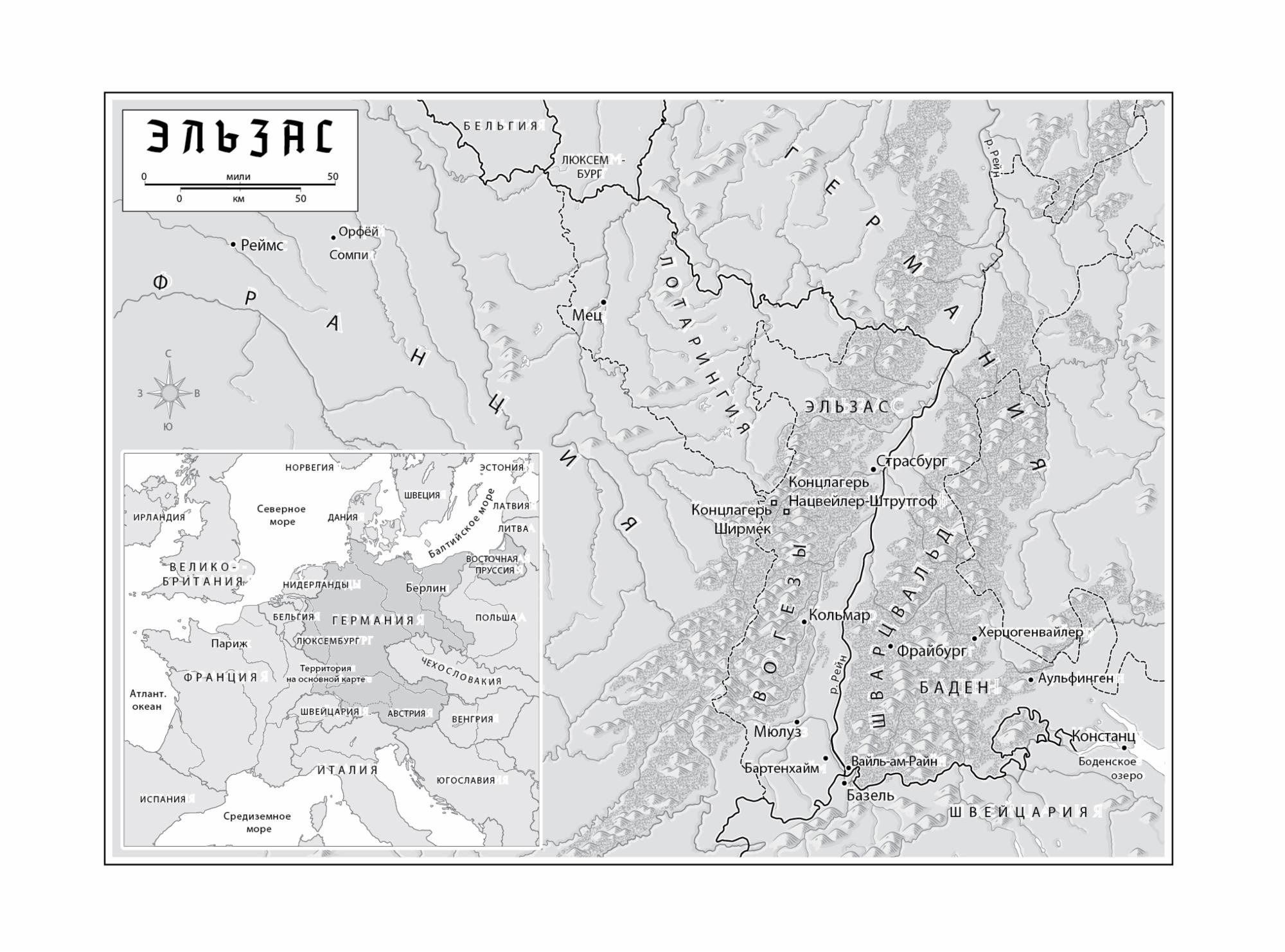 Каждое воскресенье во второй половине дня мой дед Карл приезжал на велосипеде из Германии в Бартенхайм и всю неделю жил там в съемной квартире с пансионом. Путь его пролегал через мост из городка Вайль-ам-Райн, где жила моя мать и остальные члены его семьи, мимо небольших участков, засаженных спаржей и табаком, по аллеям из белоствольных платанов, мимо сельских кладбищ, на страже которых стояли покачивающиеся кипарисы. Ехал он из Германии в регион, который раньше принадлежал Франции, а теперь снова отошел Германии. Ландшафт выглядел так, будто не менялся тысячу лет, но все в нем несло следы разделения — контрольно-пропускные пункты и вооруженная охрана, замененные уличные таблички и приглушенные голоса в придорожных кафе. Даже замки, прижавшиеся к высоким горным утесам, носили двойные имена, словно дети дважды женатых родителей: Haut-Königsburg, Saint-Ulrich, Château de Fleckenstein [29] . Бартенхайм располагался прямо на линии Мажино — на спорной границе между двумя злейшими врагами среди европейских стран. После Первой мировой войны французы понастроили крепостей и бункеров вдоль Рейна, чтобы отражать немецкие атаки, — ровно как немцы когда-то строили укрепления, чтобы защищаться от французов. Толку от этого, как оказалось, не было никакого. Эльзас был слишком прекрасен, слишком важен и слишком глубоко укоренен в самосознании обеих стран, чтобы его можно было надолго оставить в покое.