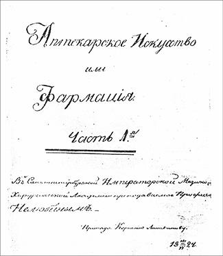 Рукопись лекции по фармации А. П. Нелюбина, 1824 год