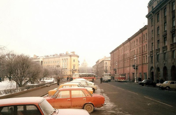 Труп закатали в ковёр, подвалами принесли в «Англетерр», коричневатый четырёхэтажный дом справа (фото 1985) —