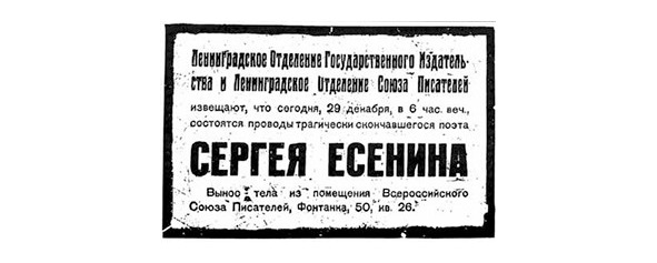 Муж вернулся только днём, усталый от заметаний следов убийства и сказал жене, что в гостинице повесился поэт Есенин — вот и всё, что вдова поведала.