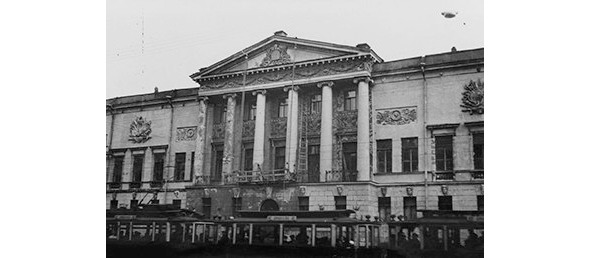 Это было огромное здание в форме скошенного прямоугольника, одним фасадом выходящее на Исаакиевскую площадь (в 1925-том — площадь Воровского), вторым на Малую Морскую улицу, и два корпуса во дворе —