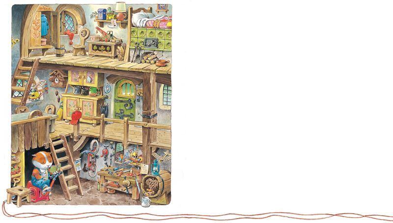 Из большого пня старого дуба Рыжик соорудил настоящий трёхэтажный дом – с лестницами, окнами, дверями, крыльцом, а сверху покрыл крышу сосновой смолой в несколько слоёв. Так что дождевая вода не капала с потолка, а стекала с крыши по желобку в бочку.