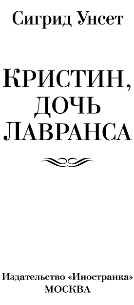 Лавранс женился в молодых годах. Ему исполнилось всего двадцать восемь лет, когда он переехал в Силь, и был он на три года моложе своей жены. Подростком он состоял одно время в королевской дружине и получил хорошее воспитание; после женитьбы удалился на покой и жил в своем поместье, ибо Рагнфрид была несколько странной и угрюмой и худо уживалась с людьми на юге Норвегии. А после того как Рагнфрид постигло несчастье и у нее умерли еще в младенческом возрасте трое сыновей, она стала совсем чуждаться посторонних. И пожалуй, потому и переехал Лавранс в долину Гюдбрандсдал, чтобы жена была поближе к своим родным и знакомым. Когда они переехали туда, у них оставался в живых один ребенок, маленькая девочка по имени Кристин.
