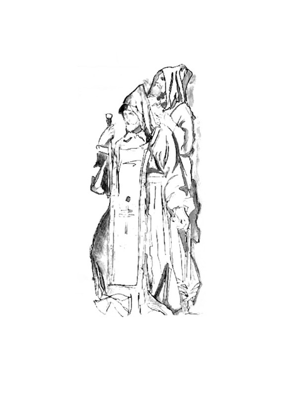 А в притворе у окна сидит Машенька,