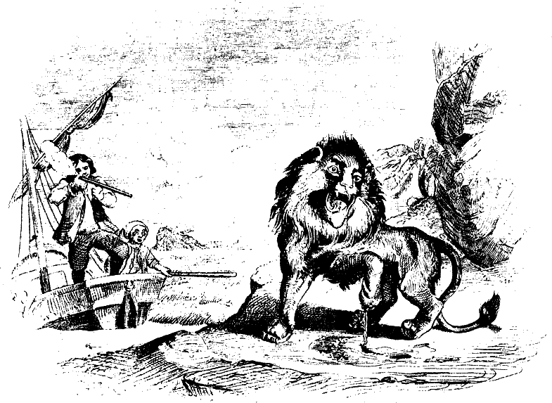 – Мне убить его! – воскликнул он. – Да ведь лев проглотит меня, как муху!