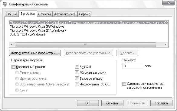 Теперь рассмотрим назначения параметров запуска операционной системы, которые могут указываться в файле boot. ini. Большинство из этих параметров можно также использовать и при запуске операционной системы Windows Vista. В этом случае будет указана команда, с помощью которой можно установить соответствующий параметр запуска.